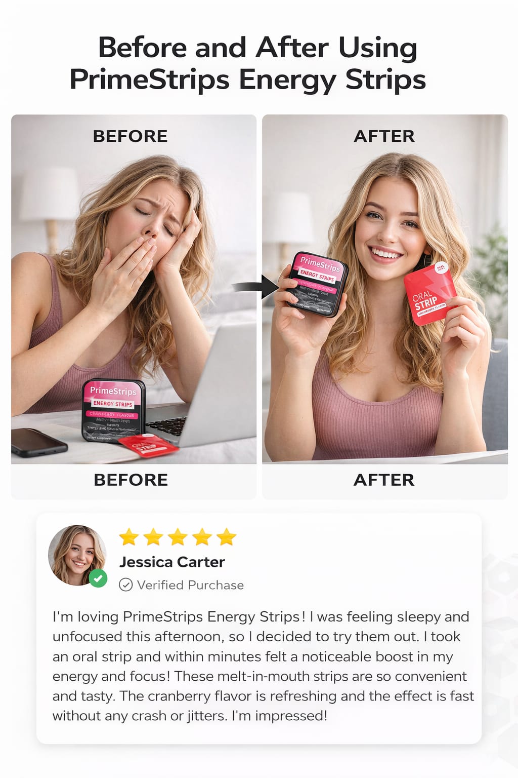 PrimeStrips™ Energy dissolves in seconds to power your day — anytime, anywhere.
